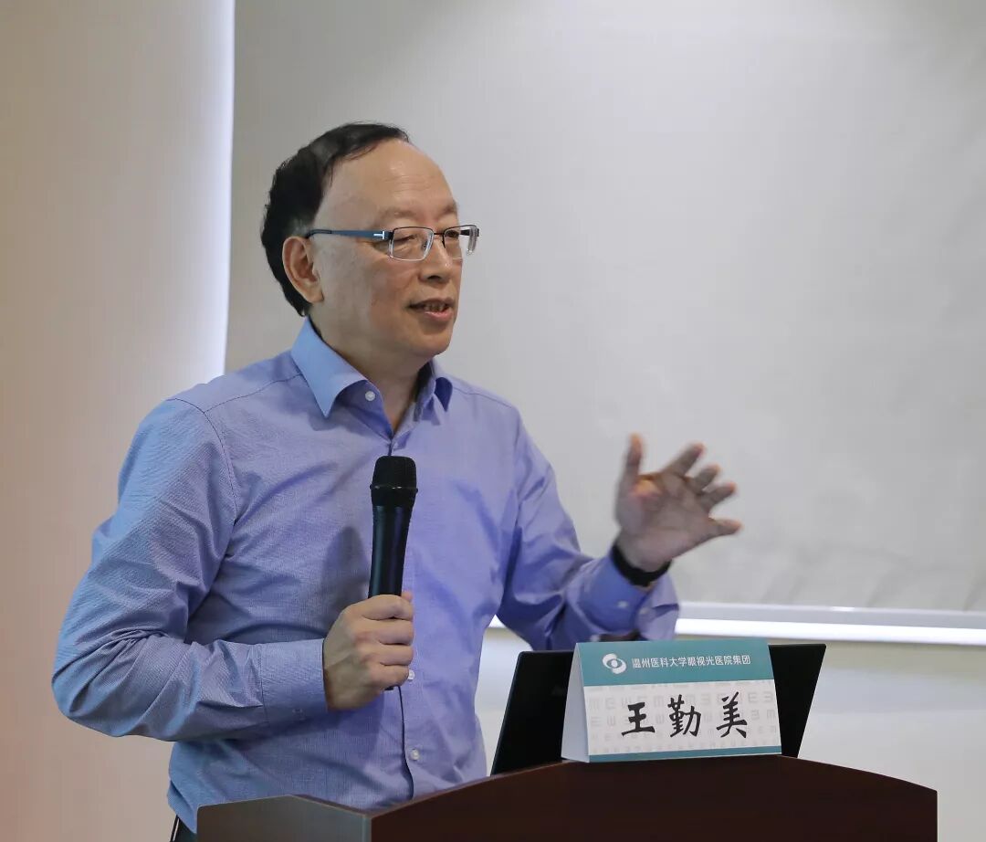 温州医科大学眼视光医院集团首席医疗官、之江院区院长王勤美教授致欢迎辞,他对各个院区赶来的学员们表达了热烈的欢迎。